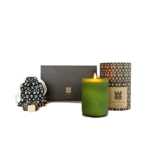 De WOO Extra Grote Geurkaars Cadeauset wordt geleverd in een elegante, duurzame geschenkdoos die perfect past bij de gerecyclede kaars en het ambachtelijk gemaakte geurzakje.
