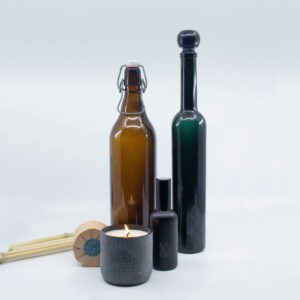 Materialen: Plantaardige was, organische katoenen lont, gerecycled glas, duurzame componenten
