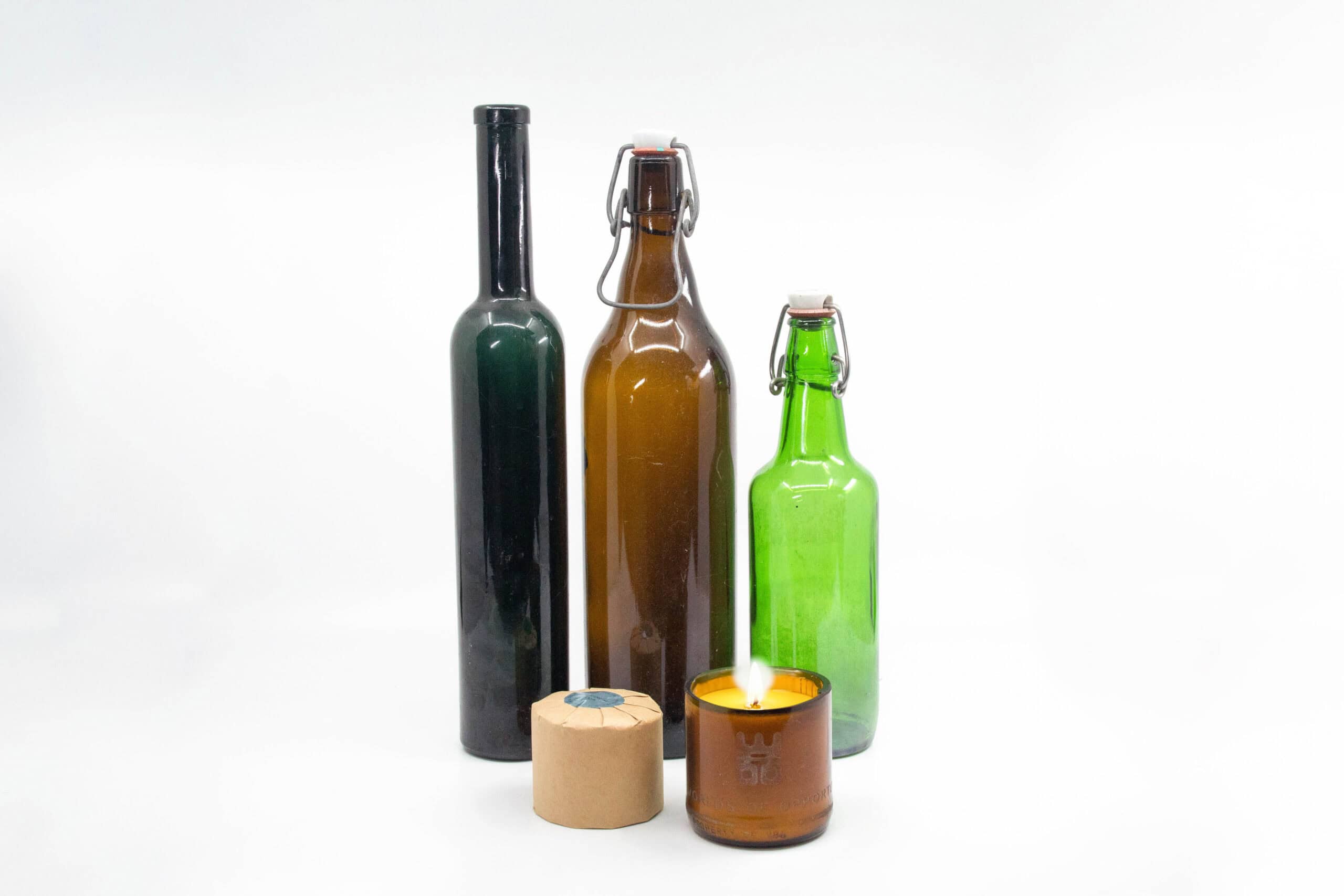 Beer Bottle Candle: natural soy wax, beeswax, sustainable cotton wick, fragrance oil.